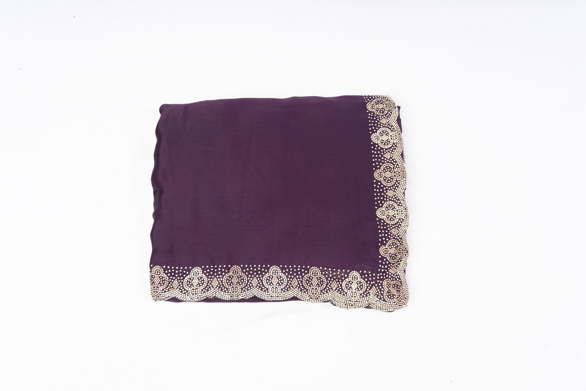 Discover the charm of the Dark Purple Golden Dot Scallop Saree from Danzira. This saree is designed for comfort and style with a smooth drape and refined detailing. Perfect for celebrations, weddings, and special evenings. Pair with classic jewelry and heels for a complete look.